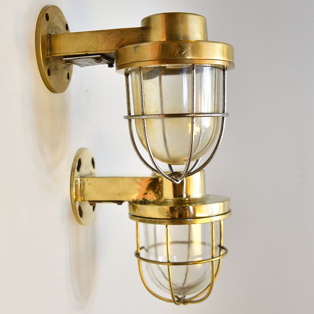 Yes, this pair of vintage 90-degree brass nautical passageway lights is a genuine salvaged set from old passenger ships – perfect for adding authentic maritime security style to entrances, hallways, or covered outdoor spaces across the UK and EU. Built from solid brass with clear glass lenses and IP56 rating, they offer reliable directional lighting while creating warm, retro ship ambience in modern or industrial interiors. A matching pair that’s ideal for symmetrical wall displays, bringing real ship history and durable illumination to homes, pubs, or hotels.