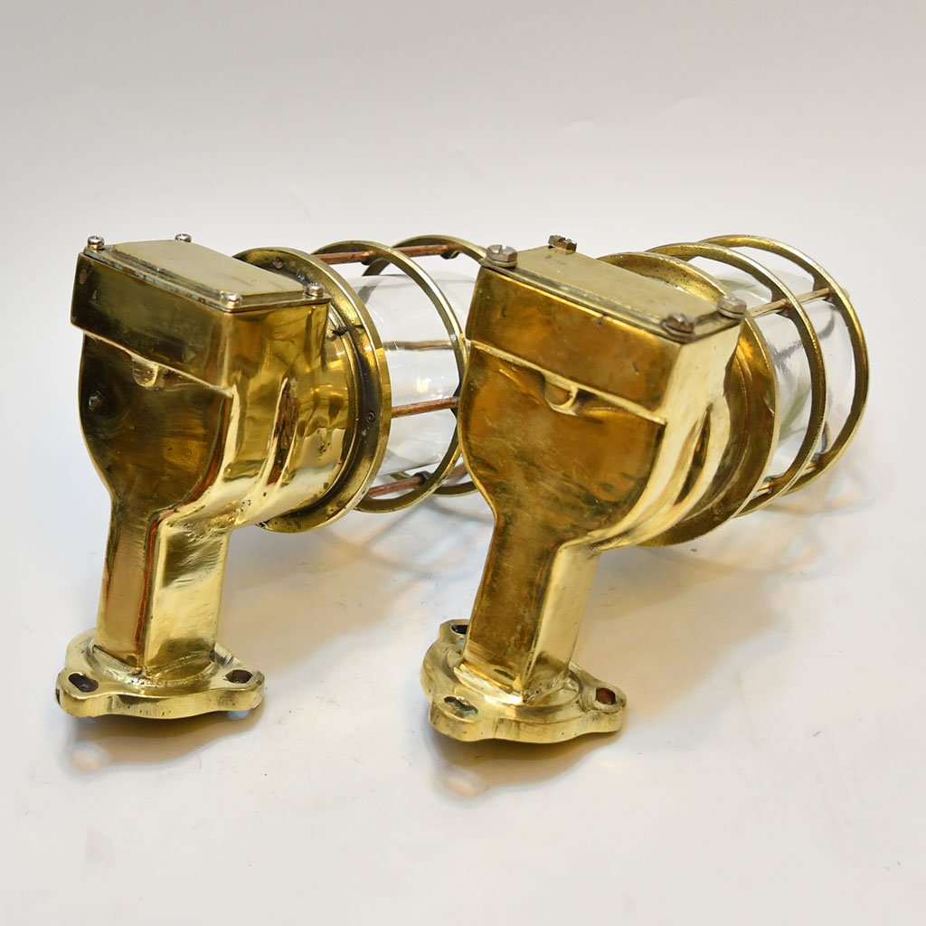 Pair of Vintage 90 Degree Brass Nautical Wall Lights – Ship Passage Salvage