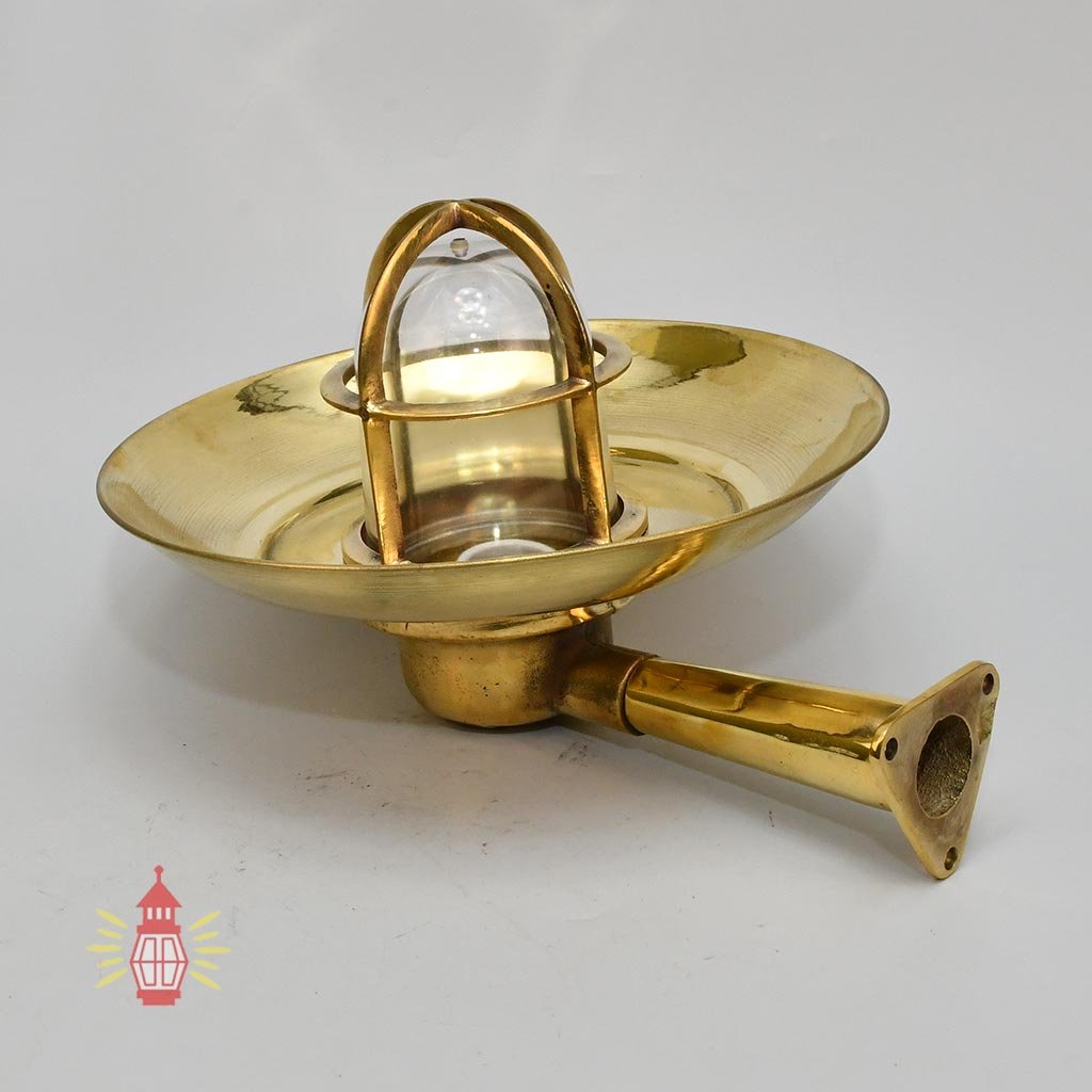 Yes, this authentic German Wiska brass nautical wall light with wide shade and protective cage is a genuine salvaged piece from old cargo ships – perfect for adding real maritime character to homes or covered outdoor spaces across the UK and EU. Built from solid marine-grade brass with thick glass dome and IP56 rating, it’s sturdy and reliable for wall mounting while creating warm, classic ship ambience in hallways, entrances, or patios. A polished original that’s ideal for anyone wanting true nautical history and durable lighting.