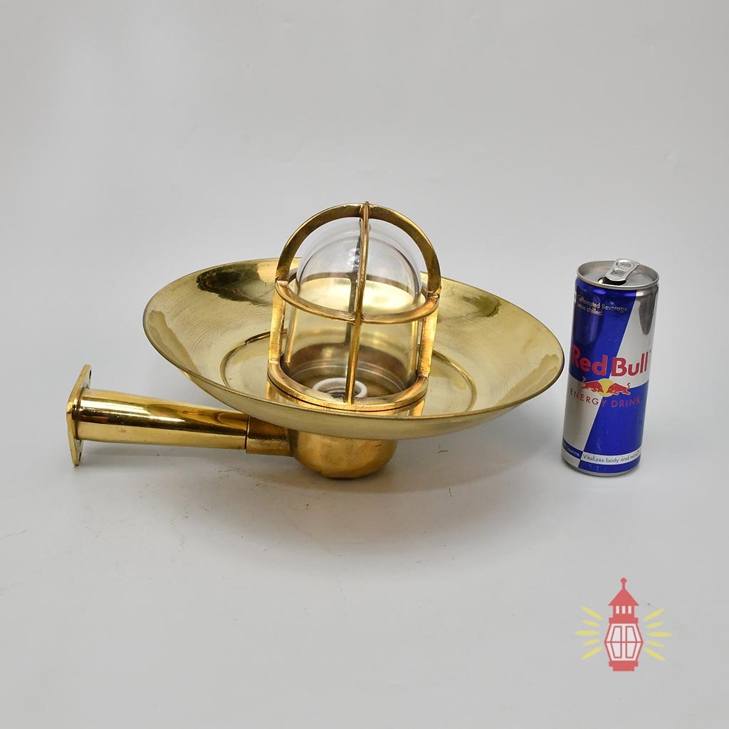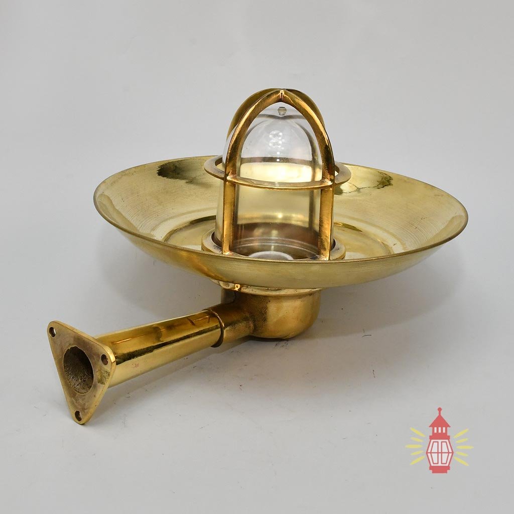 This wiska brass nautical light comes from old cargo vessels that sailed from the 1950s to the 1980s. Made from solid marine-grade brass with a wide protective shade and thick glass dome, it’s designed for tough ship conditions – strong and reliable for safe passage lighting.