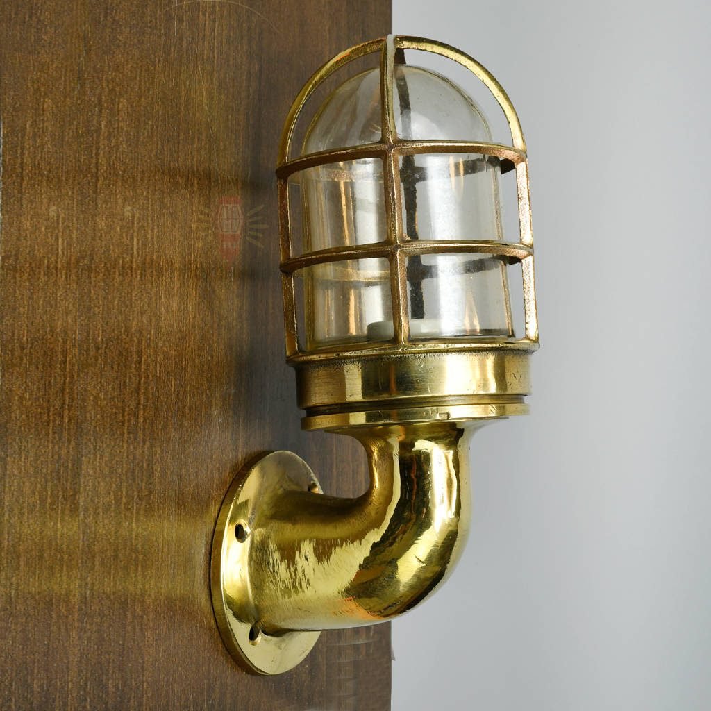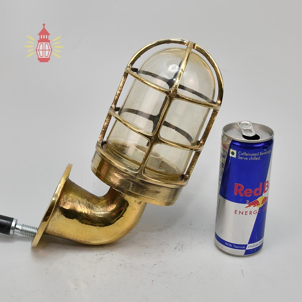 This brass swan neck nautical light has the classic curved arm design of traditional ship passage lights, with a strong protective cage and thick clear glass for that authentic look. Made from quality brass, it’s built tough – solid and lasting, perfect for everyday use indoors or in sheltered outdoor areas.