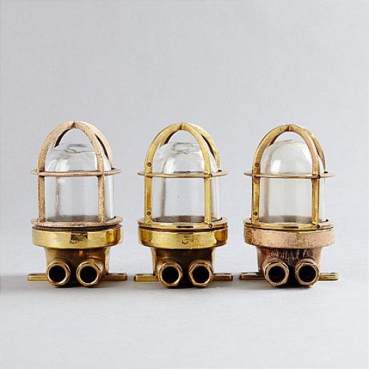 Passageway Brass made wall light – 3 brass made Nautical wall lights. This is a set of 3 authentic brass-made passageway lights. From upper to down, the length of lights is almost 12 inches long. The junction box is almost 5 inches wide with two holes. All the lights have been re-wired for better use. These lights are from working vessels,and will have the minor surface area and minor dents and dings. these are adorable looking nice lights.