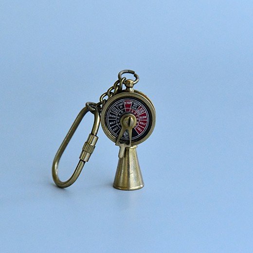 This brass telegraph keychain is made to capture the look of real engine telegraphs from old ships, with all the little speed markings and a moving handle for that authentic feel. Crafted from solid brass, it’s built strong and lasting – just the right weight to feel proper in your hand without being bulky.