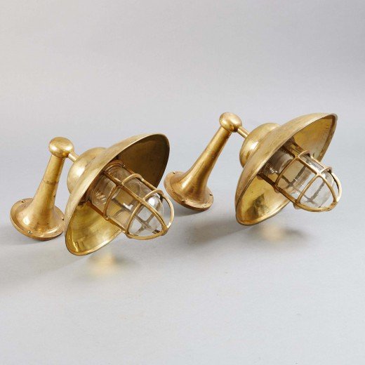 Nautical Brass Wall Mounted Ships Passageway Bulkhead Light features the industrial quality design & non-corrosive solid brass construction. The most popular lamp or light in our vintage marine brass lighting collection, this architectural salvage sconce has all the character you would want from a vintage nautical light and none of the headaches. One of our most versatile lights can be used anywhere from dock lighting to nautical vanity lights to industrial bunk scones and more.