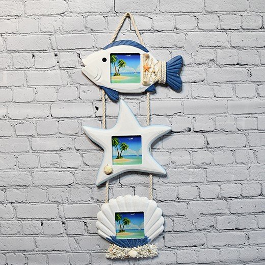 People often look for nautical hanging photo frame set, wooden fish starfish seashell photo frames, coastal three hanging picture frames, beach nautical triple photo decor, vintage style nautical sea life frames, handmade wooden nautical photo hanging, traditional coastal hanging photo ornament, classic seaside fish starfish shell frame set.