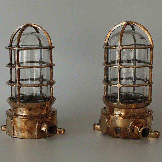 We have re-wired this light, including a ground wire, with all new UL-Listed parts that hold an ordinary 75-watt house globule and up to 250 volts. The confine is faintly stamped “Pauluhn” on one side. Oceanic Brass made wall light brass made Bulkhead wall lights salvaged from cargo ships. This is a set of 4 authentic brass-made bulkhead lights. Each light weighs almost 9 pounds. These lights consist of thick glass and with a sturdy cage. All the lights have been re-wired for better use. These lights are from working vessels and will have the minor surface area and minor dents and dings. These are very nice looking lights for one’s exterior and interior usage