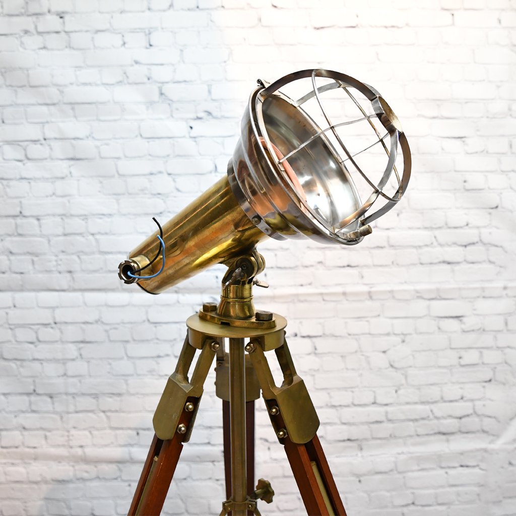 Genuine Reclaimed Brass Nautical Tripod Spotlight