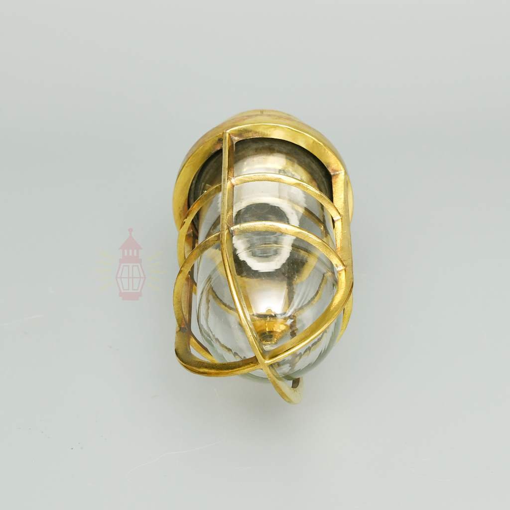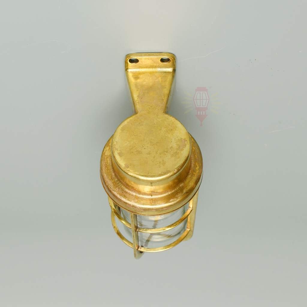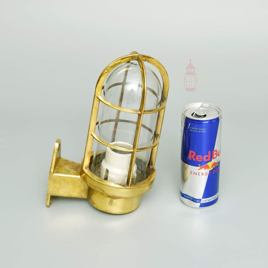 Light your space with true seafaring toughness using this restored vintage brass nautical passage light. Crafted from solid brass with thick clear glass globe and protective cage, it weighs a substantial 1.6 kg – noticeably heavy for that premium build unlike lightweight replicas. The polished brass finish and right-angle mount deliver lasting quality.