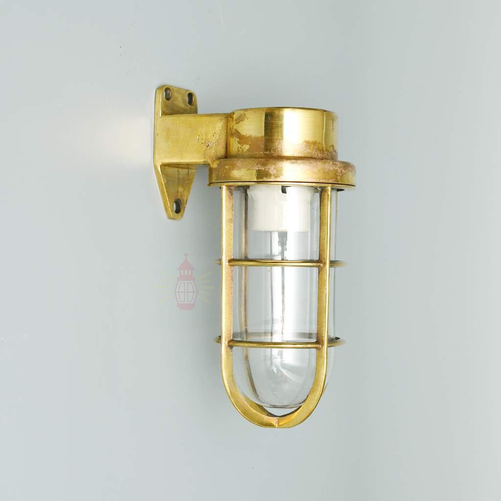 People often search for vintage brass nautical passage light, antique clear glass brass cage light, salvaged brass ship corridor lantern, polished brass nautical wall sconce clear, retro brass marine passage light, authentic brass cargo vessel corridor lamp, classic clear glass nautical wall fixture, old brass right angle ship light.