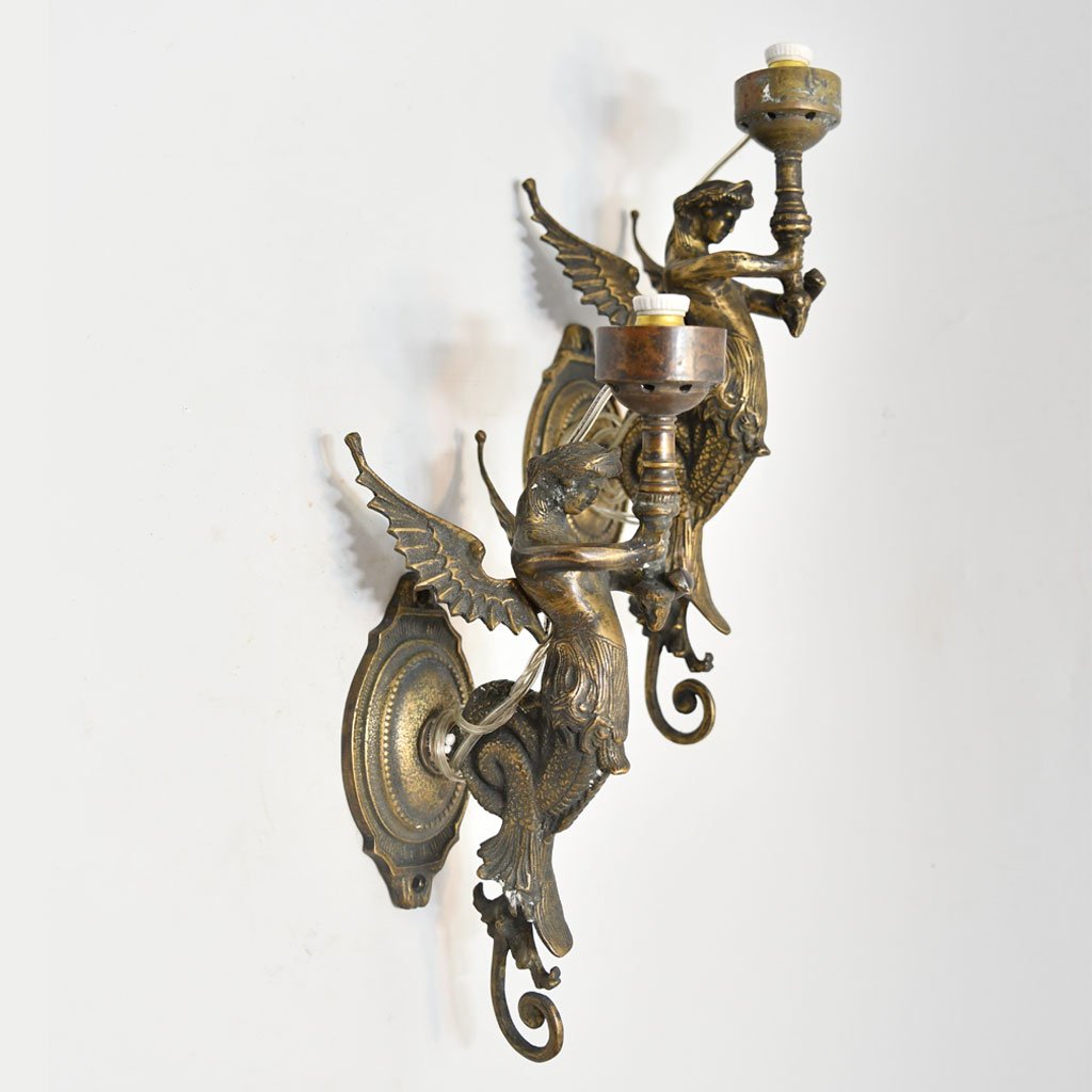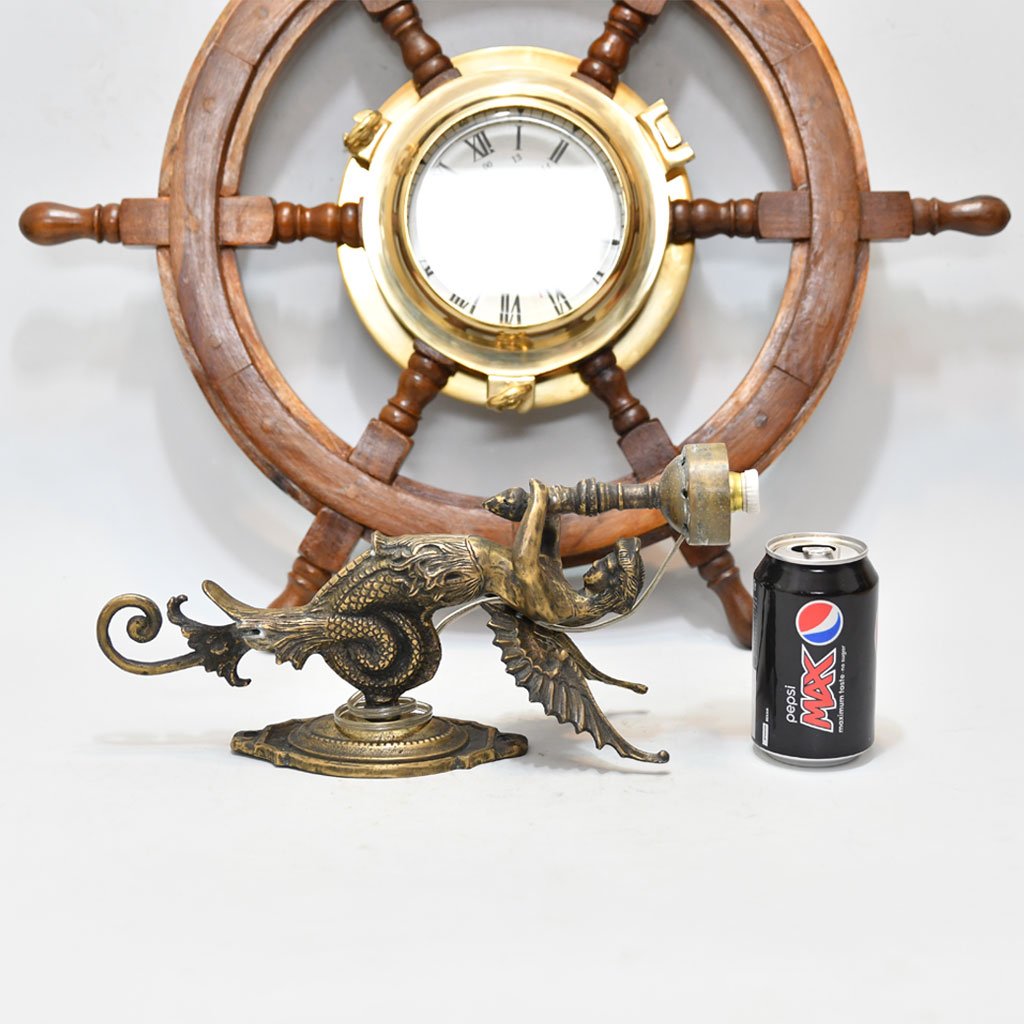 This set of two antique brass figureheads is crafted from solid brass with beautiful detailed designs and deliberate distressing to give that genuine aged patina. The excellent condition and fabulous craftsmanship make them look like true 19th-century pieces – strong, heavy, and full of character.