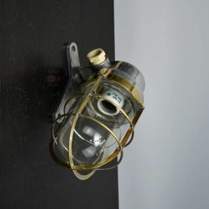 Vintage Brass Caged Post Light with Aluminium Mount – Nautical Passageway Sconce