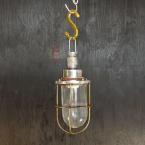 Authentic Vintage Aluminium Caged Pendant Light – Nautical Hanging Salvage