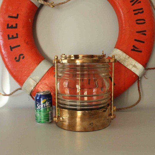 Solid Brass Nautical Piling Light With Fresnel Lens.The Fresnel focal point is fit as a fiddle, with a couple of light edge chips. You will be transported the first 360-degree nautical post light that appeared in the photographs. This Solid Brass Nautical Piling Light With Fresnel Lens is a fantastic example of one of our new production pieces. The high-quality marine grade brass and thick glass Fresnel lens make these lights perfect for docks, outdoor landscaping, driveway entrances and patio decks.