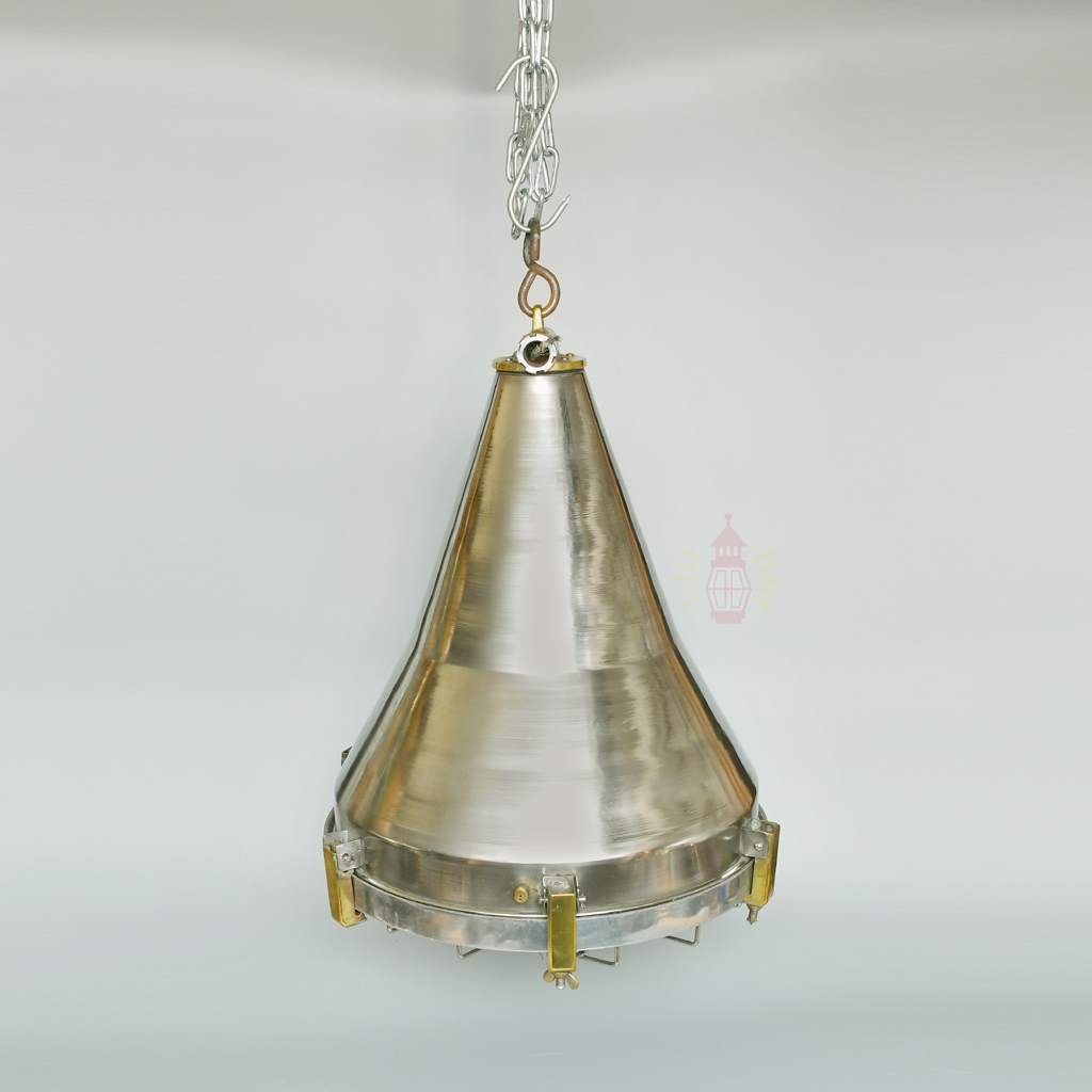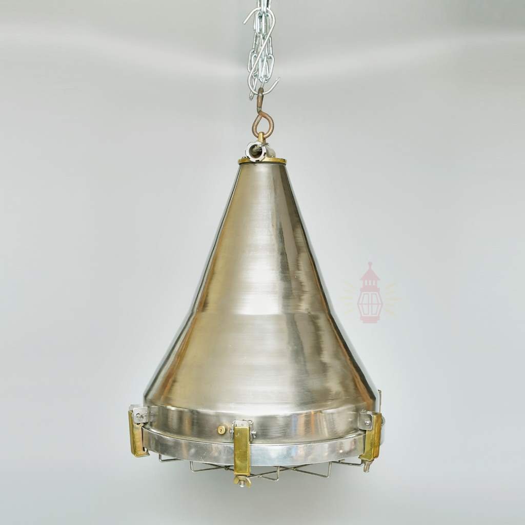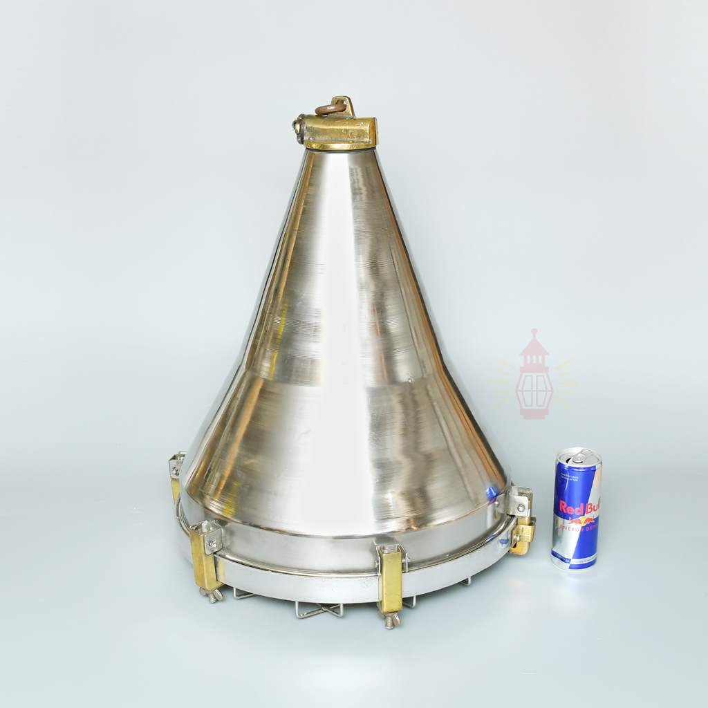 Make a bold maritime statement in your home with this large stainless steel pendant light. We reclaim each one from old cargo ships that sailed from the 1950s to the 1980s. Skilled craftsmen in Europe carefully restore it to keep its original rugged look while making it safe for modern use.