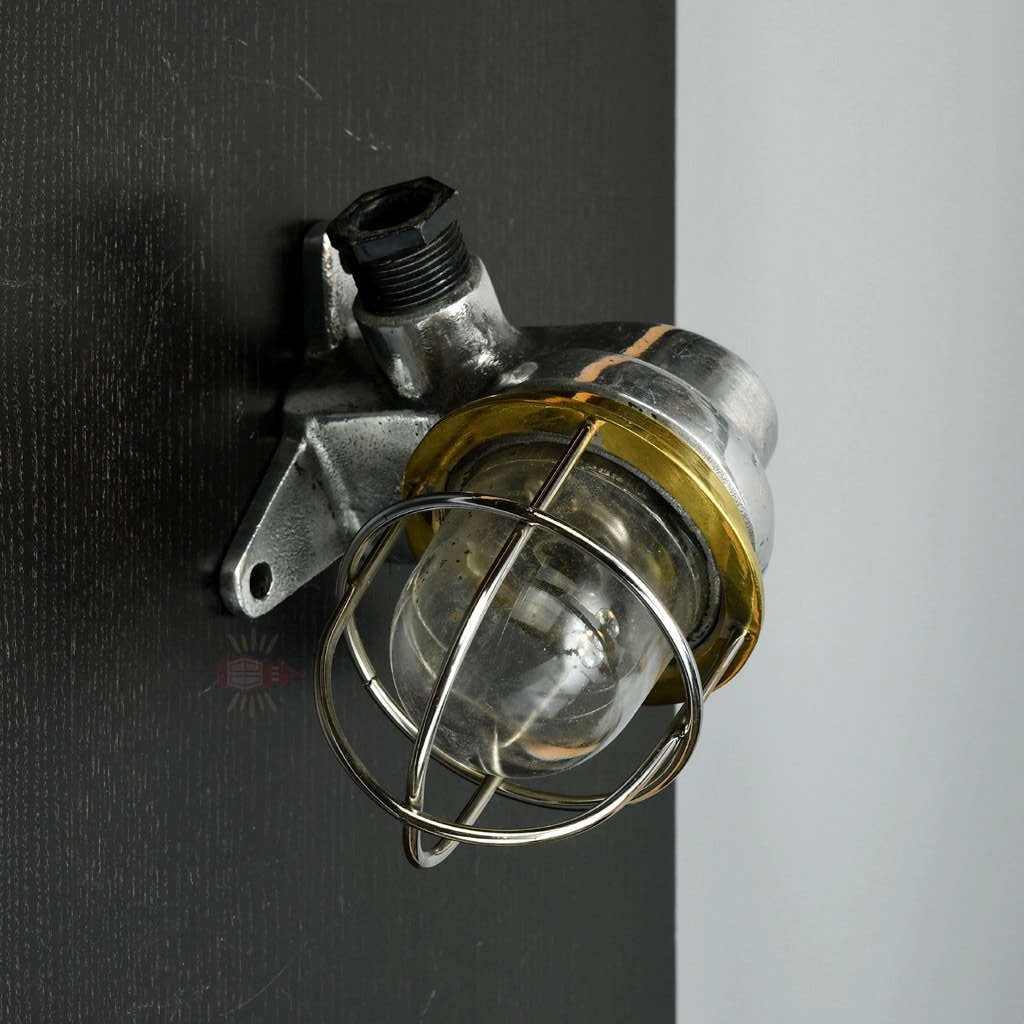 Yes, this small aluminium nautical wall light with brass cage is a genuine salvaged piece from 1950s cargo ships – perfect for adding soft maritime glow to homes across the UK and EU. With its compact design and protective cage, it’s ideal for staircases, hallways, or bathrooms where you want gentle light with real ship history. A lightweight original that’s great for anyone loving nautical style or needing shatterproof lighting over prep areas.