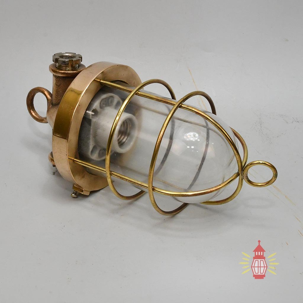 This heavy brass hanging lamp from old ships brings real maritime feel to homes in the UK and Europe. The clear glass globe and sturdy cage give warm light, perfect for ceilings or walls in coastal rooms. It feels proper and solid, not like cheap copies.