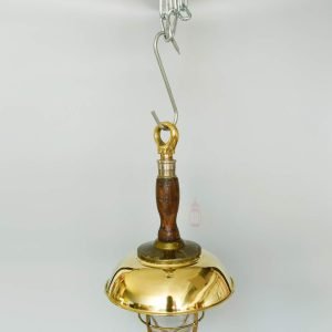 Brass Hanging Light With Copper Deflector Cap – Vintage Nautical Fixture