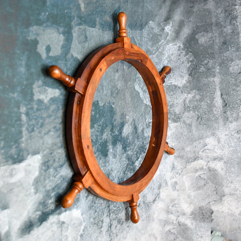 This retro wheel draws from classic steering helms on sailing ships and cargo vessels. The lacquered wood resists elements while the brass details add lasting shine – ideal for living rooms, offices, or outdoor covered areas.