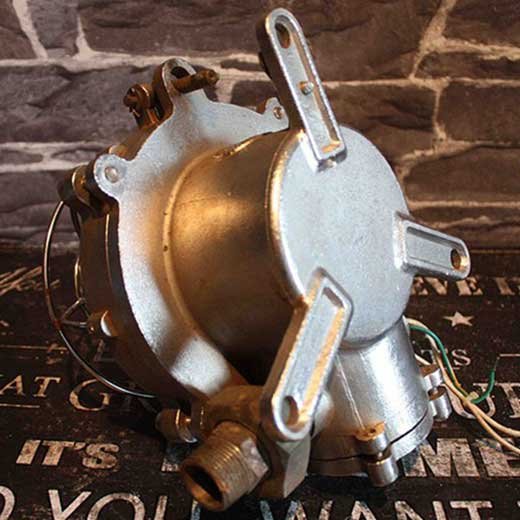 Vintage industrial cast bronze and brass explosion-proof table lamp with an isolator switch manufactured c1975 by Wiska and Centurion who are manufacturers of Ex. (explosion-proof) rated fixtures.The lamp comes fitted with a cast brass Wiska isolator switch and wire cage. These fixtures have been reclaimed from decommissioned ships and professionally restored by hand in Sweden by Sigtuna Marine for modern use, either indoors or outdoors.