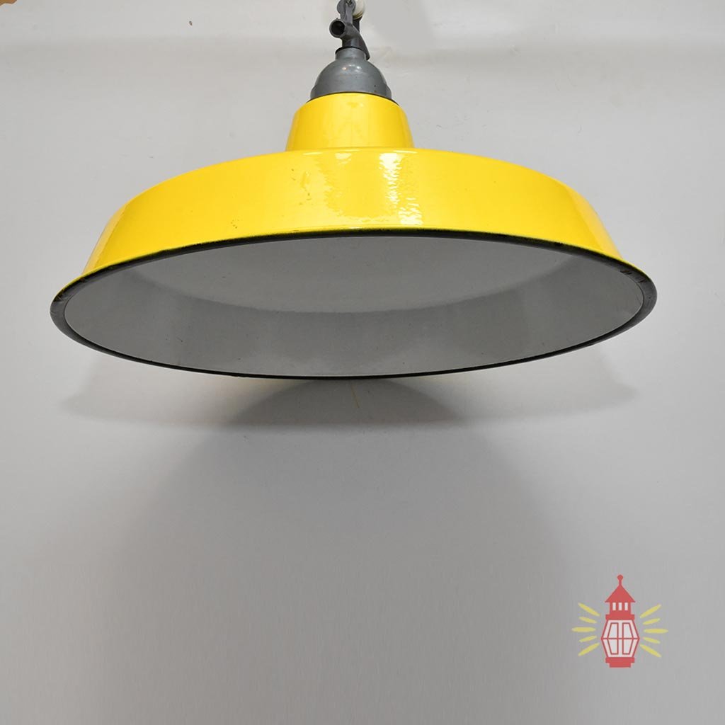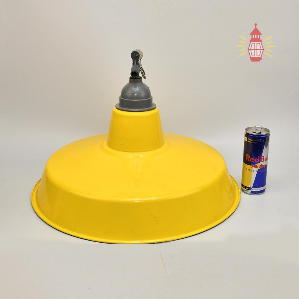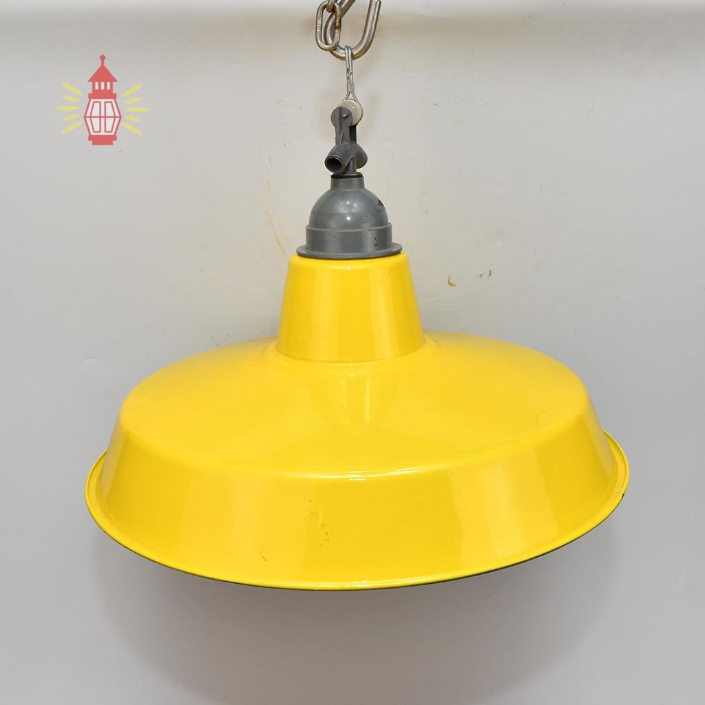 Authentic Vintage Iron Pendant Light with Yellow Shade – Genuine Maritime Heritage