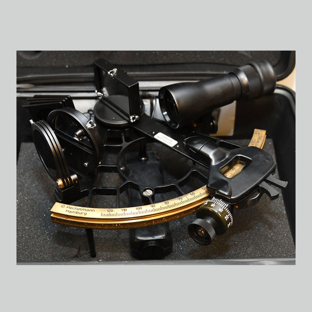 This is a beautiful Vintage Marine Navigation Sextant Made By Germany functional and made out of brass & polished to an antique finish. These Sextants are reflecting navigation instruments used to measure the angle between any two visible objects. A Sextant can also be used to measure the lunar distance between the moon & another celestial object. People got amazed when they can see this kind of product in this modern era. 100% authentic and classic. Nautical collectors, enthusiasts, and seafarers alike will love this stunning solid Large Brass sextant. As a perfect gift, this Navigation sextant instrument for sale is a gleaming recreation of the classic working sextants that have guided sailors since the 1700s