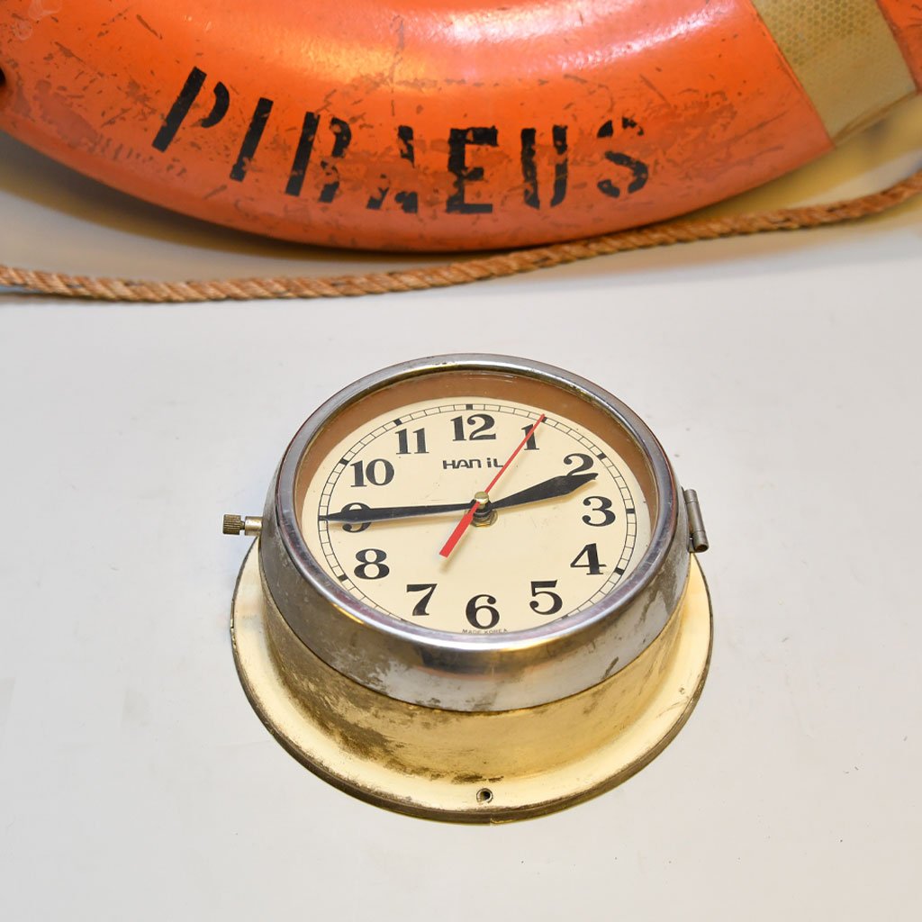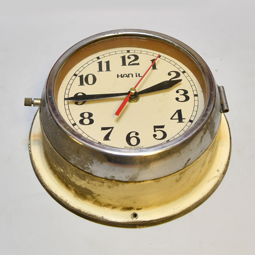 Vintage Marine Reclaimed Ship’s Clock by Hanil. Reclaimed and reclaimed from a decommissioned cargo ship. Perfect for that nautical or coastal-inspired space. See our full vintage marine clock range. These are a great piece of history that has literally traveled the seven seas to get here. These electric clocks were originally bulkhead mounted and controlled by an electrical signal from the main ship’s clock – and therefore had no internal workings. Our old, vintage, retro and antique timepieces are not new or made to look old. They may have small marks and scratches on them, which are consistent with their age and original use. We feel these add to their character and appeal.