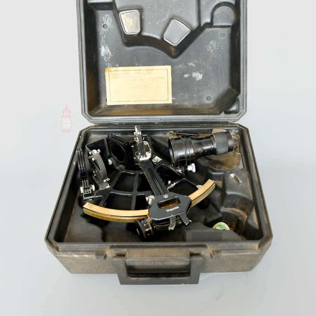 Made entirely from brass by Tamaya & Co Ltd in Japan, this sextant served on working cargo and merchant vessels from the 1950s to 1980s. Navigators trusted its precise mirrors and scale for measuring the stars and finding position far from land. The heavy 3.2 kg build gives a reassuring, premium feel that lighter modern copies simply cannot match.