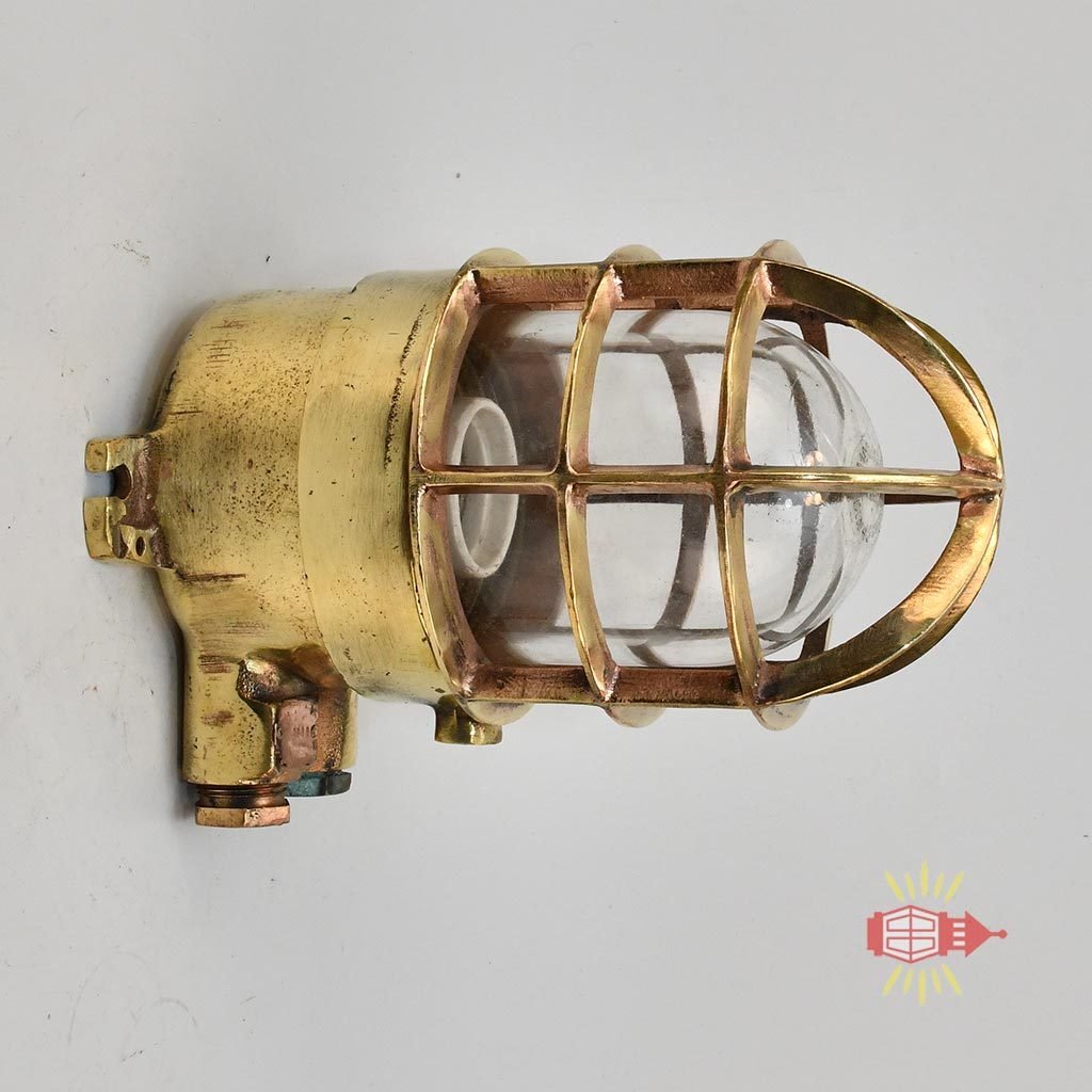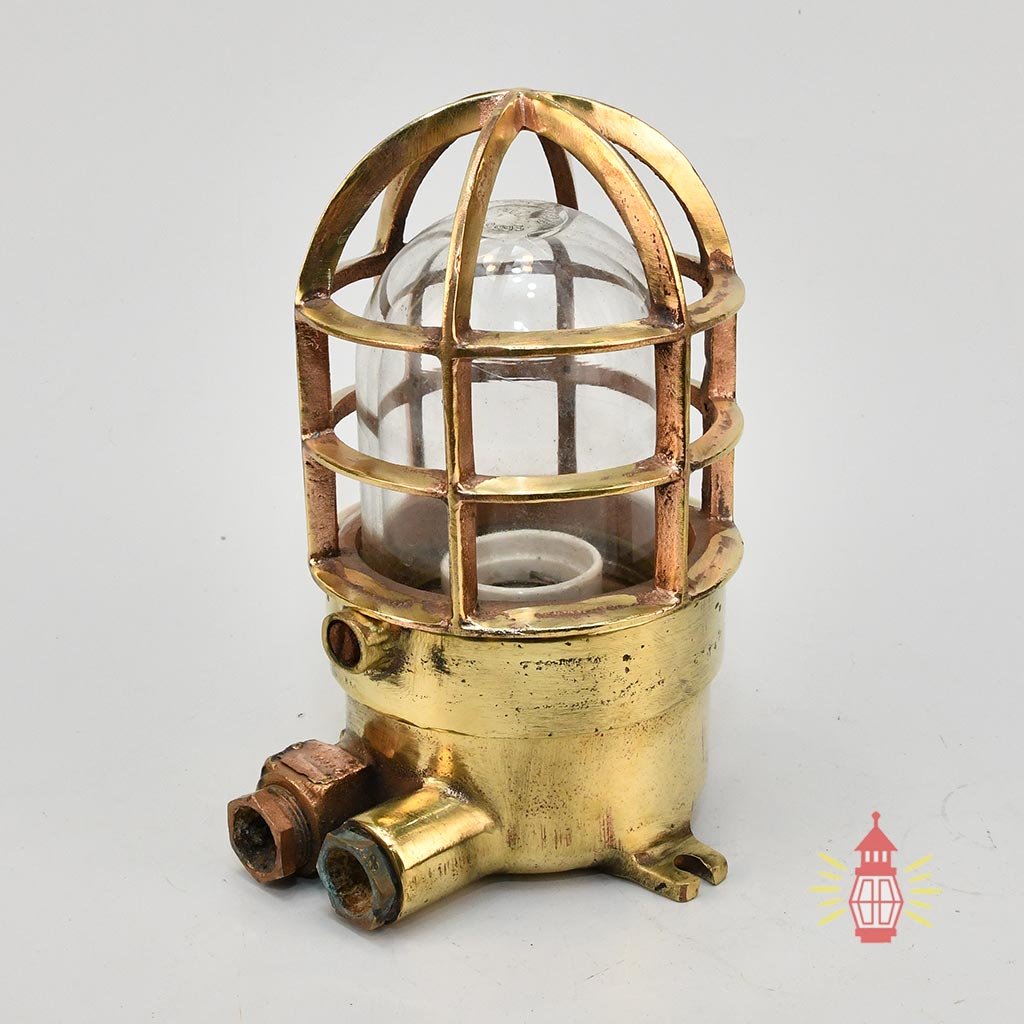 We salvaged each one from ships, restored it carefully in Europe, and kept every mark of its sea-going life. The protective cage over the glass globe keeps the bulb safe while letting the light shine through beautifully. You will notice small natural differences in the brass colour and patina on every lamp – that is what makes yours truly unique and full of character.